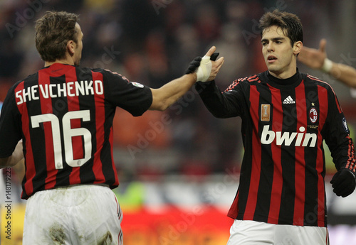 Ac Milan S Andriy Shevchenko And Team Mate Kaka Shake Hands During